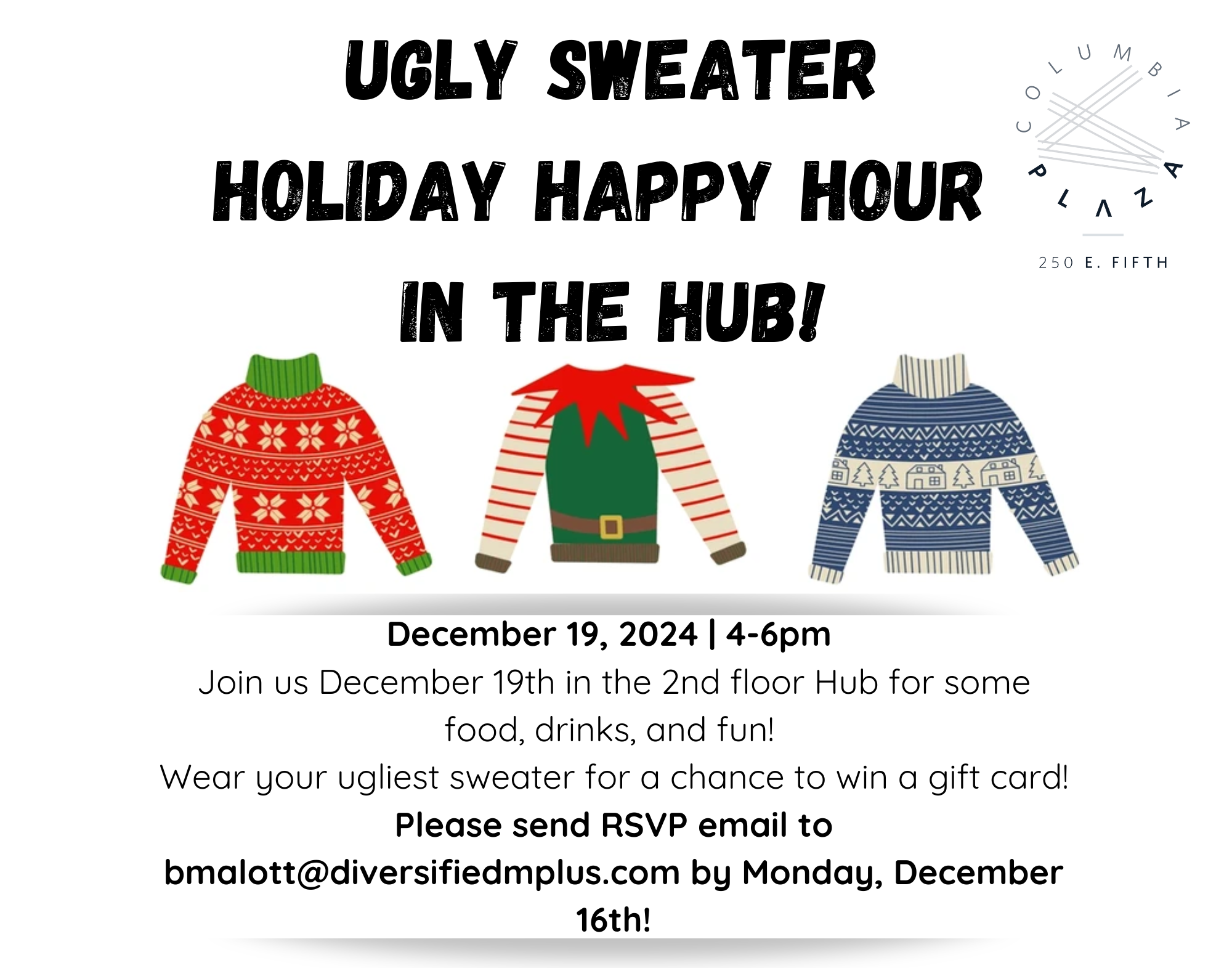 Don’t forget to RSVP for the Ugly Sweater Holiday Happy Hour!