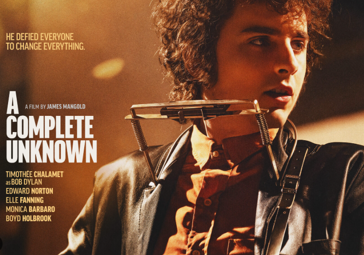 “A Complete Unknown” is a biographical drama about the life and transformation of Bob Dylan, exploring his journey from a young folk singer to a global icon of music and cultural revolution. Directed by James Mangold, the film delves into Dylan's rise to fame, his relationships, and his reinvention as an artist during a defining period of his career.