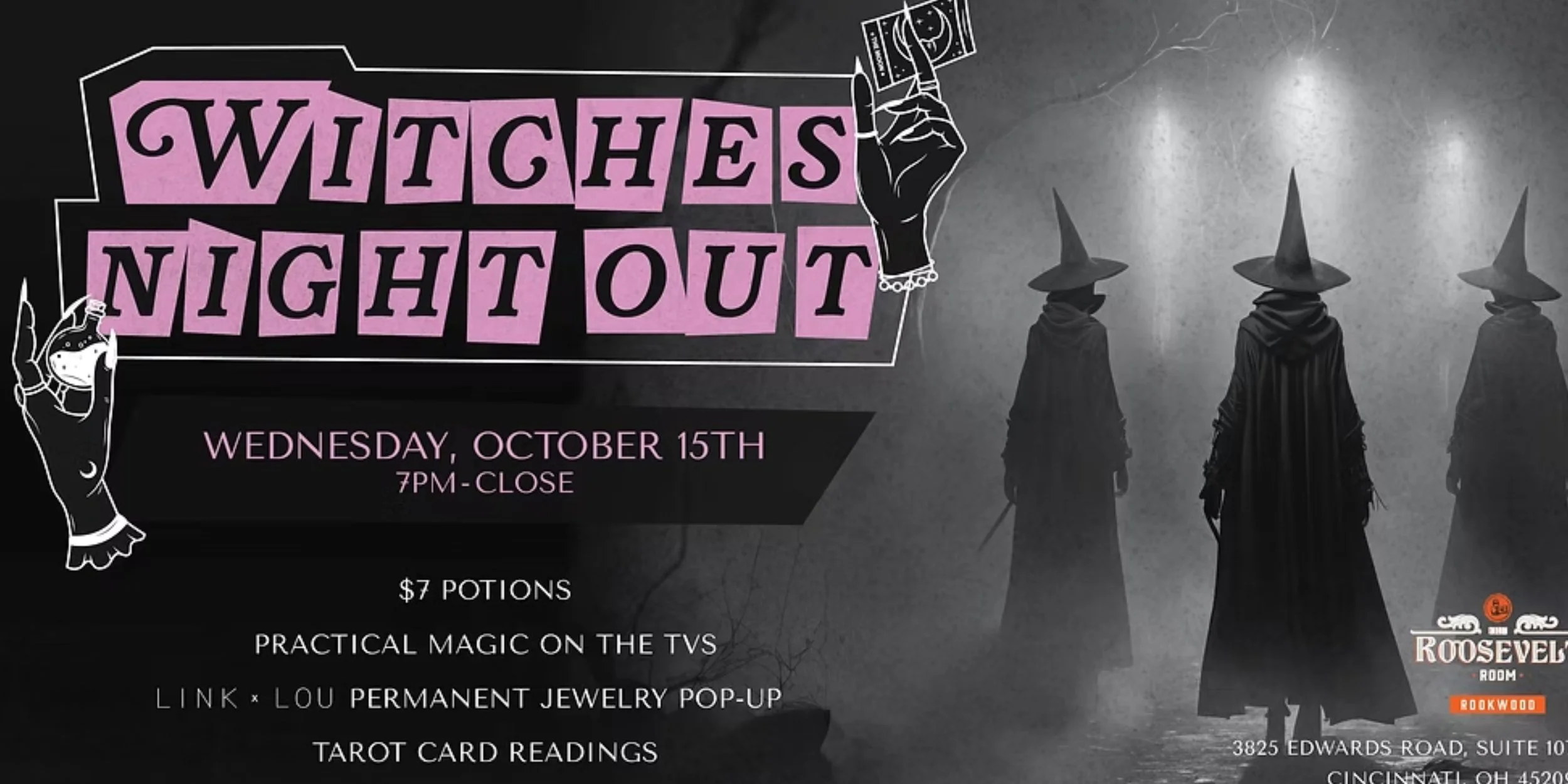 Slip into your witch era as Practical Magic plays on the TVs, add a little sparkle with a Link x Lou Permanent Jewelry Pop-Up, and peek into your future with tarot readings by @witchnamedlizzy. come mix, mingle, and make mischief with your favorite ghouls!